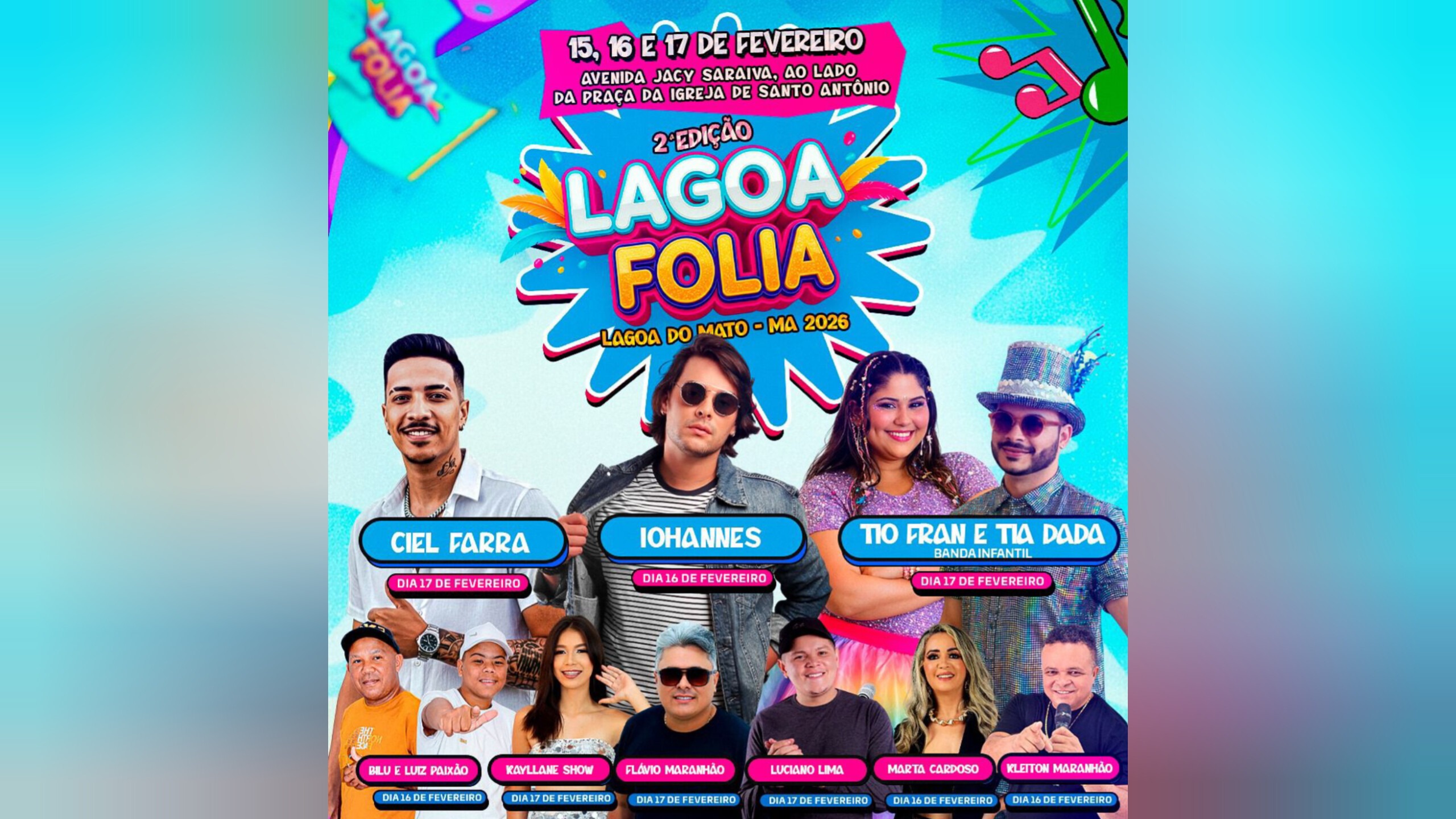 Lagoa do Mato já respira alegria, música e celebração. Nos dias 15, 16 e 17 de fevereiro, a cidade realiza a 2ª edição do Lagoa Folia, um evento que promete